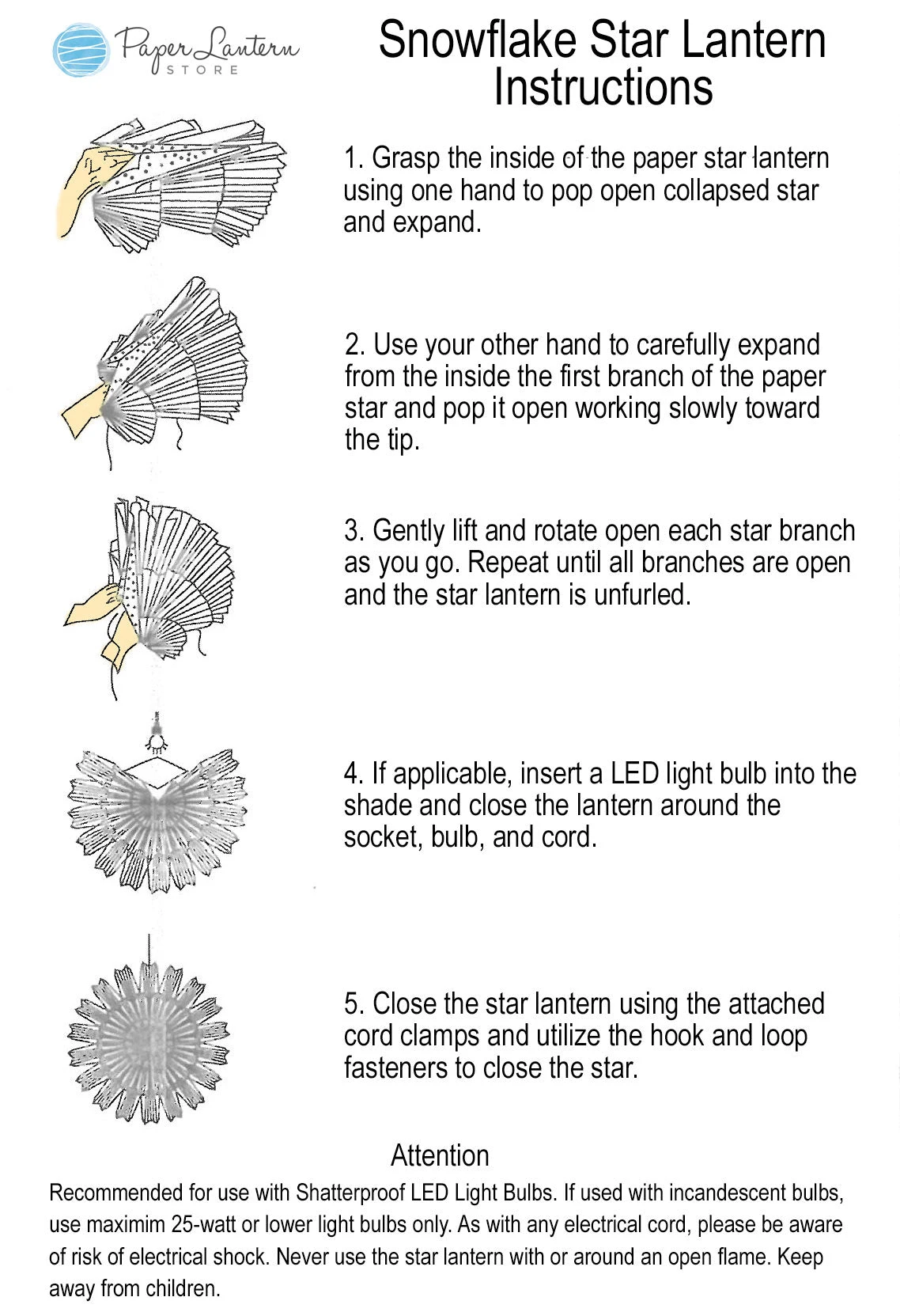 ![]() | Need lighting? We have unique E12 Socket Single and Multi-Lamp Cord Kits that can be used to hang and beautifully illuminate this Paper Star Lantern. |