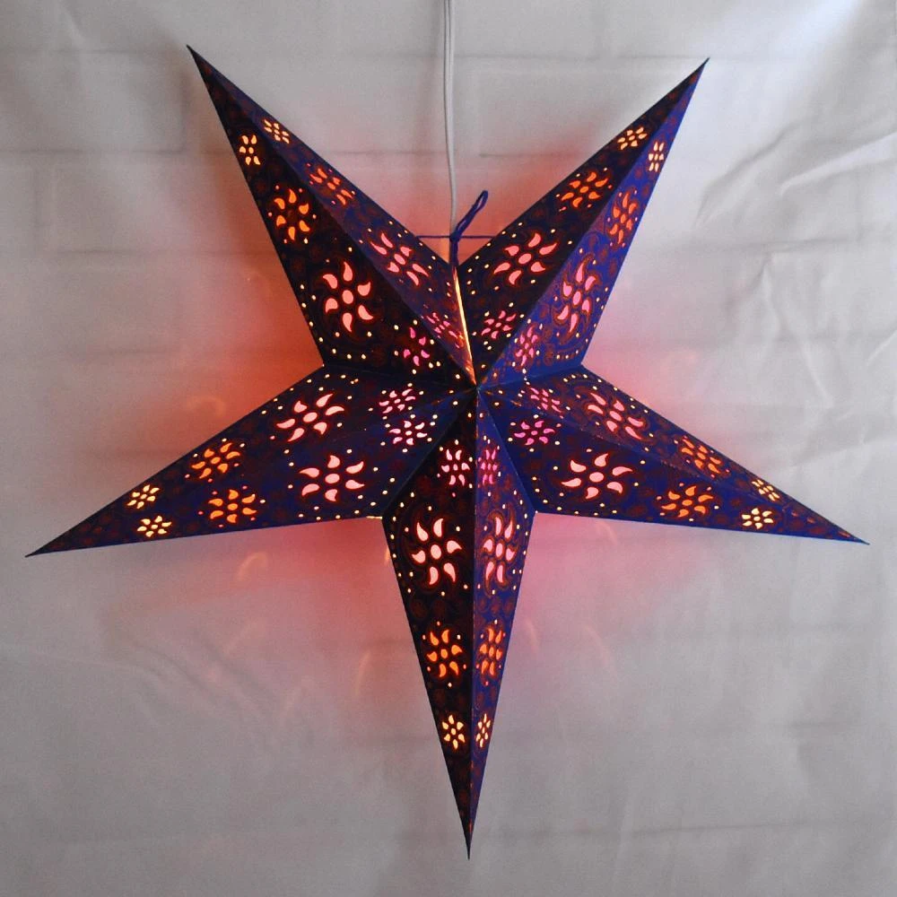 PaperLanternStore’s hand-crafted hanging Paper Star Lanterns are beautiful as a home decor accessory or as an outdoor Wedding decoration. These star lantern lamps are high-quality – made from thick paper and punched with a special star design. Available in many colors and patterns, our unique star lanterns can be seen hung on the sets of many Hollywood movies and TV shows. Our stars come from direct from India and will make a beautiful display or decoration in any room in the home. They add a fun touch to any party or event and you can pair with one of our lamp cord kits to create wonderful ambiance lighting.