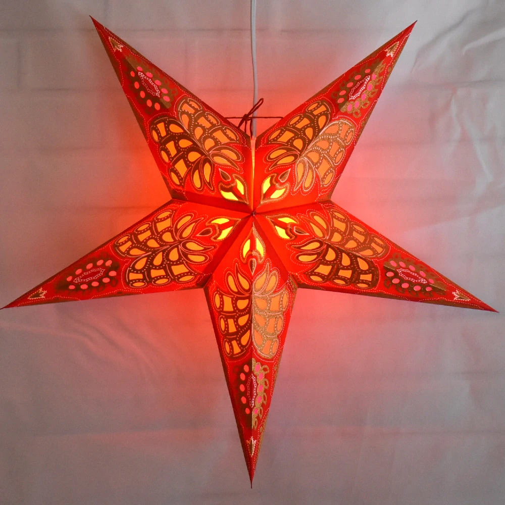PaperLanternStore’s hand-crafted hanging Paper Star Lanterns are beautiful as a home decor accessory or as an outdoor Wedding decoration. These star lantern lamps are high-quality – made from thick paper and punched with a special star design. Available in many colors and patterns, our unique star lanterns can be seen hung on the sets of many Hollywood movies and TV shows. Our stars come from direct from India and will make a beautiful display or decoration in any room in the home. They add a fun touch to any party or event and you can pair with one of our lamp cord kits to create wonderful ambiance lighting.