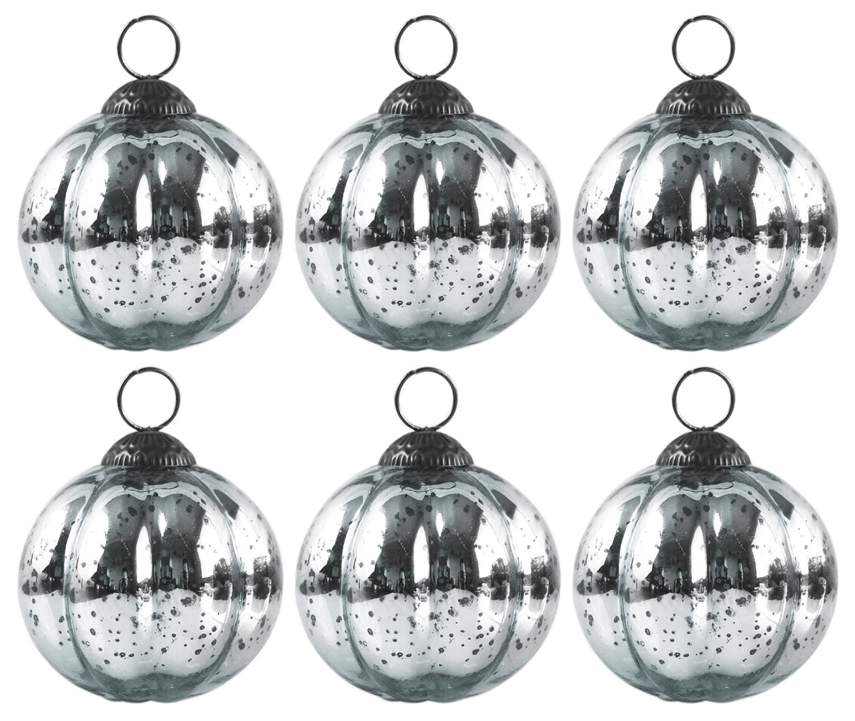 6-pc Large Mercury Glass Posey Ball Design Ornaments