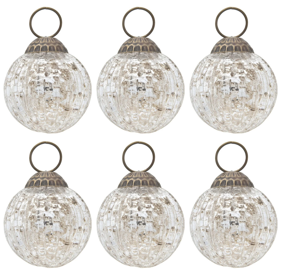 6 Pack | Mercury Glass Ball Ornaments (2-Inch, Silver, Mona Design) – Great Gift Idea, Vintage-Style Decorations For Christmas, Special Occasions, Home Decor And Parties