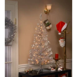 4′ Pre-Lit Medium Silver Tinsel Artificial Christmas Tree – 70 Clear Lights