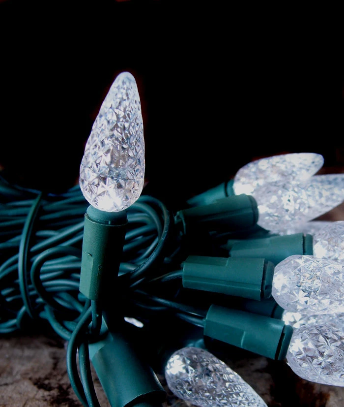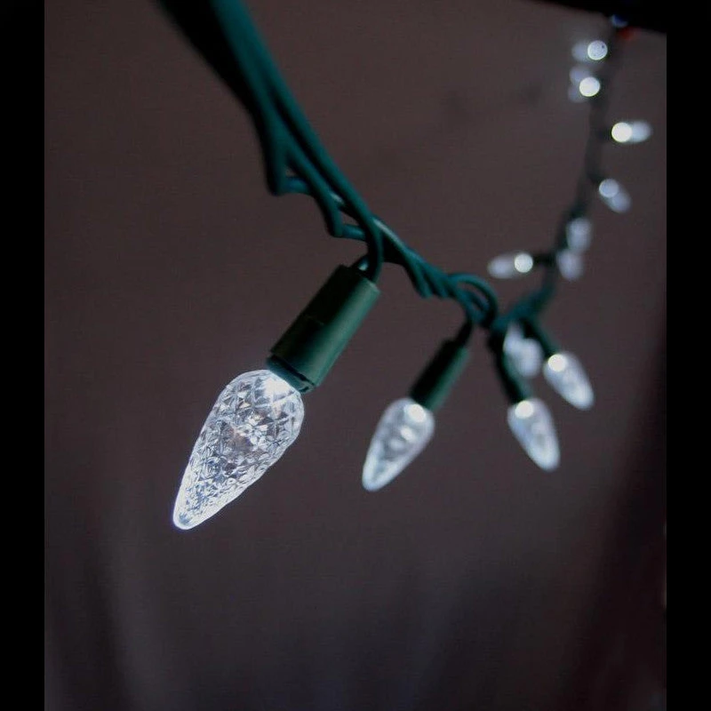 This is our LED C7 string light set in the cool white color. Our cool white LED lights will brighten up any holiday display or event. This string light has a non removable high quality LED light bulb. This set is UL Listed and rated for indoor and outdoor use.