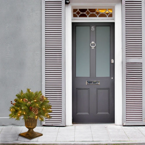 Christmas Central 1.5′ Pre-lit Potted Pinecone And Berry Artificial Christmas Tree, Clear Lights