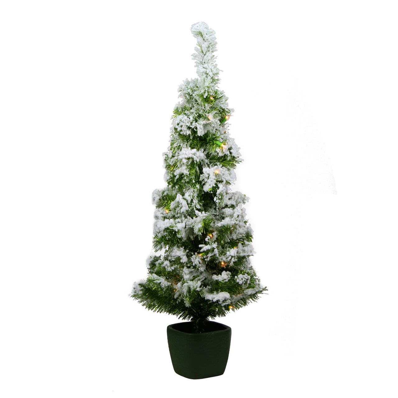 - 3.5 Foot Tall Pre-Lit Flocked Green Pine Artificial Christmas Tree