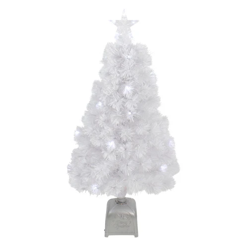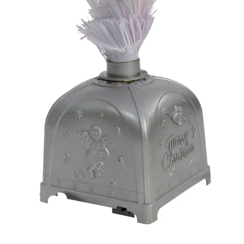 Pre-lit fiber optic tree has a multi-color wheel at base