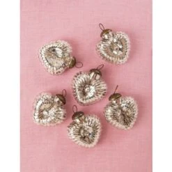 3″ Silver Viola Mercury Glass Heart Ornament Christmas Tree Decoration
