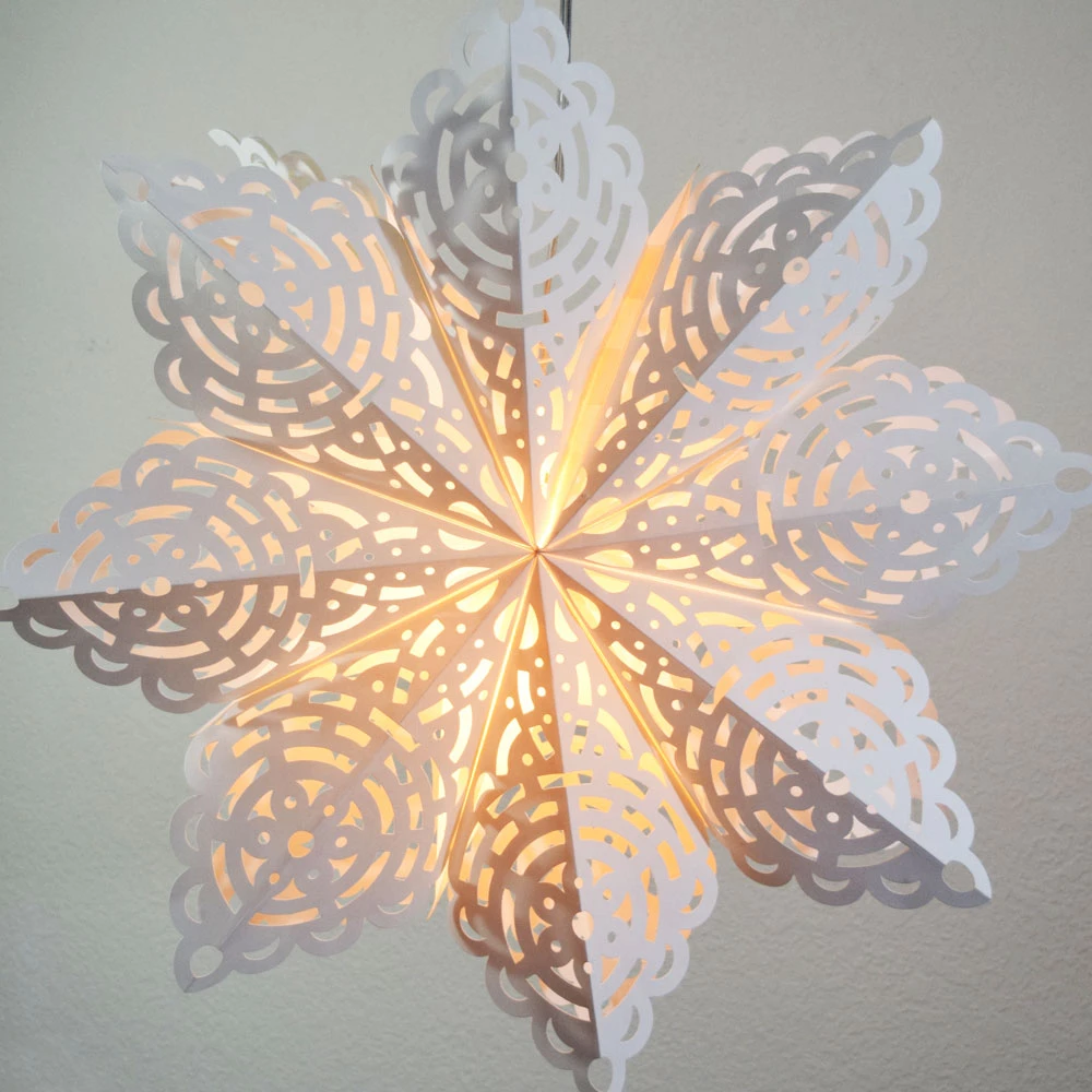 Our intricately cut, lacy and lovely paper star lantern decorations are truly exquisite and perfect for holiday decorating and beyond. Made of durable heavy paper, these paper star lanterns can be used as home decor or party and event decorations, indoor or outdoor!