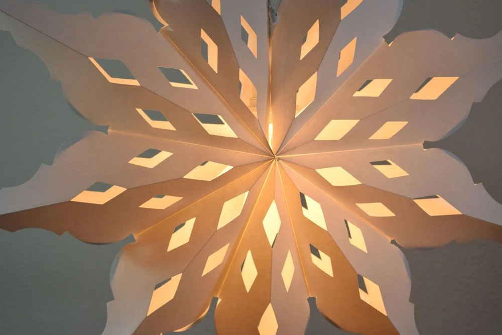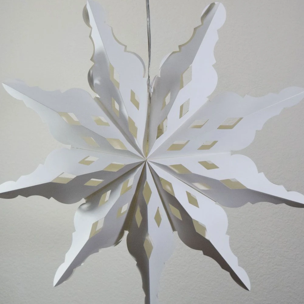 Quasimoon Pizzelle Paper Snowflake Lantern (27-Inch, White, Winter Diamond Snowflake Design) – Great With Or Without Lights – Holiday Snowflake Decorations