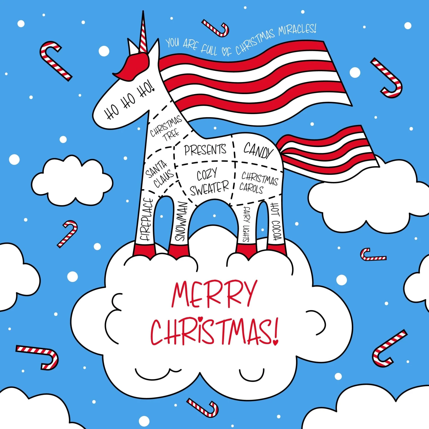 Check out Unicorn On A Cloud Merry Christmas Confetti-exploding Greetings Card, get it personalised with your images and delivered.